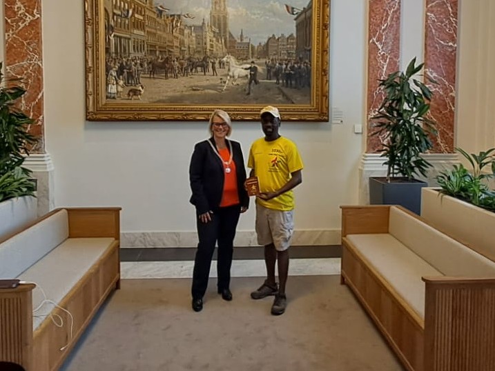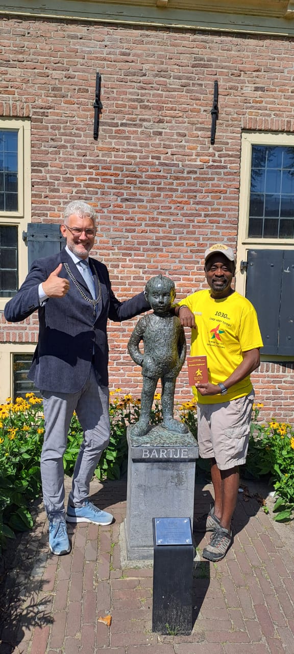Daarna trokken we door richting Assen, maar het liep niet helemaal volgens plan. Door vertragingen en fysieke uitputting moest ik zelfs een stukje liften om op tijd bij de burgemeester te zijn. Uiteraard ben ik na afloop weer keurig afgezet op het punt waar ik was opgepikt, de kilometers tellen! Rond 10:30 uur was ik bij de burgemeester, maar Ton, mét de wandelpaspoorten, was er nog niet. Gelukkig kwam hij twintig minuten later aan en kon de burgemeester haar handtekening zetten. Een prachtig moment.