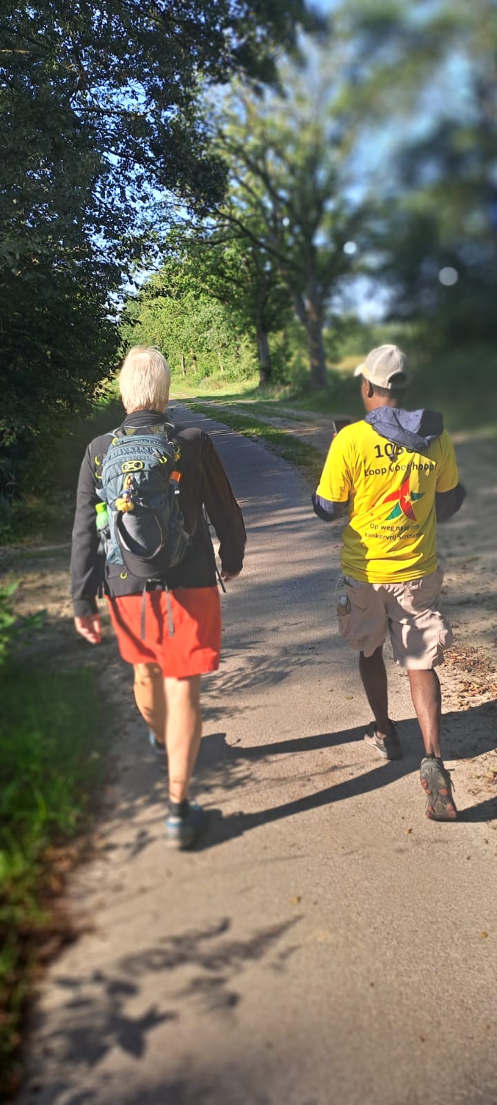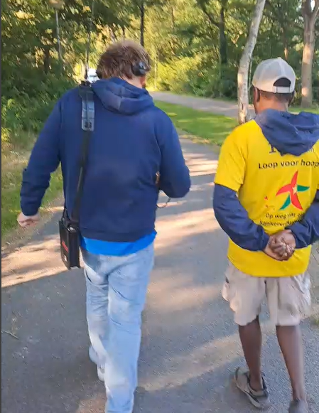 De ochtend was koud en winderig, maar ik kreeg warm gezelschap van Roelie en Ton, die een stuk meeliepen. Rond 07:50 uur volgde een bijzonder moment: een live interview op NPO Radio 1. De radiowagen, de crew, de sfeer, het gaf energie, al kostte het ons wel bijna een uur vertraging. Maar het was het dubbel en dwars waard. (Terug te luisteren via NPO Radio.)